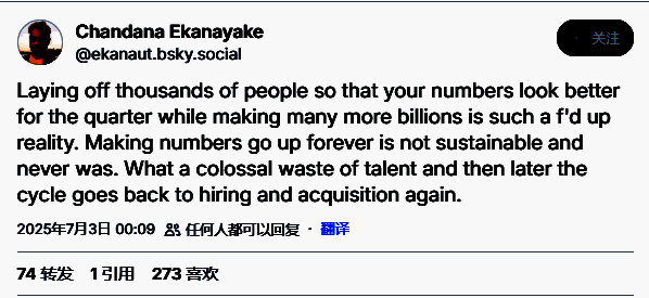 Respawn系统设计师Andrew Carl特别指出,微软一面裁员一面重金投入"垃圾级"生成式AI研发令人愤慨:"提醒一下,这些裁员正发生在他们豪掷800亿美元押注AI之时——那些没人要的AI工具只会撒谎、存在严重安全隐患、能耗高得离谱。"