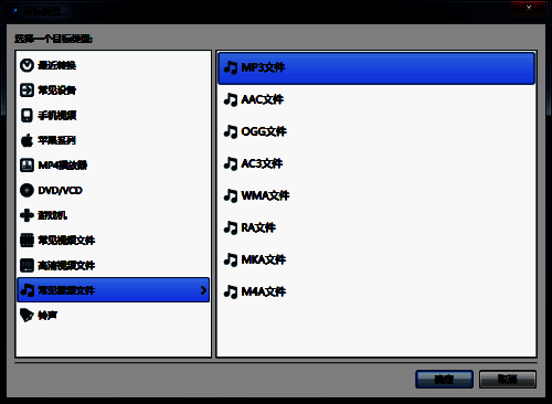 2、添加完毕后它会让我们选择剪辑后音乐的输出格式,随便选一个即可;