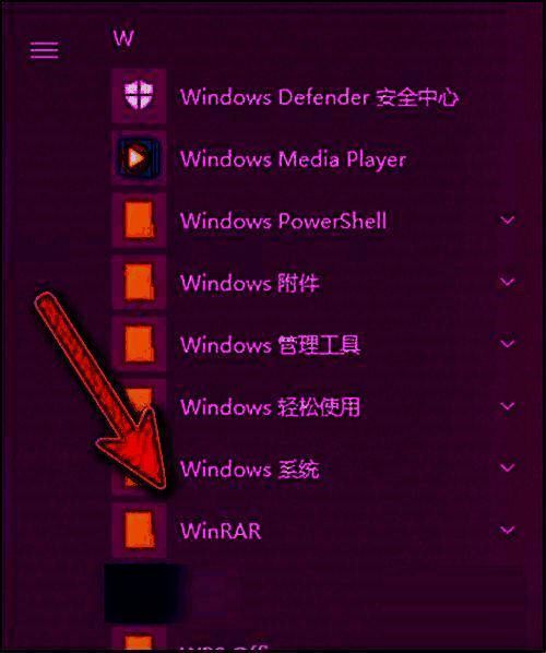 2、在W开头的列表中的“WinRAR”点开(如图所示)。