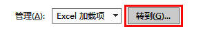 3. 在右侧下方,选择“excel加载项”后点击“转到”按钮,如下图所示。