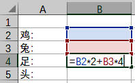 7. 首先我们来看上半部分,意思为我们根据题目想要通过改变B2(鸡的数量)B3(兔的数量)得到一个B4(足的数量)为94的结果,如下图所示。