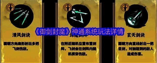 在御剑封魔游戏中,神通即是我们战斗中所使用的技能,每次升级时,都可以三选一获得本场战斗想要。神通它不仅能够提升角色的战斗力,还能解锁新的战斗技能和效果。下面给大家带来了《御剑封魔》神通系统玩法详情!