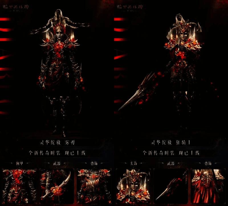 玫瑰落焰,暗黑优雅!迷雾与暮夜交织的庇护之地深处,古老幽远的神秘身影悄然显现。烛光在风中摇曳明灭,几位身穿华丽铠甲的勇士以优雅而坚定的姿态站立,等待着新的冒险。《暗黑破坏神:不朽》全新传奇时装【灵华绽放】以深红色和金色为主色调,明艳冶丽,迷幻神秘。古典华丽的鎏金纹饰搭配层叠繁复的甲胄设计,尽显高贵优雅气质。束腰、腕甲等部位均以枯骨雕饰和重金属等元素点缀,完美诠释暗黑美学。红色花瓣如炽火余烬般飘落,仿佛一簇簇跳动的灵魂之火。当火焰玫瑰泣血盛开,关于灵魂之力的古老传说将在庇护之地再度绚丽绽放!