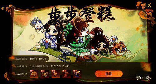 金秋趣味活动来袭!快来和你的好友组队收集重阳节的专属糕点“重阳糕”啦!10月10日至10月20日每日18:00-23:00活动期间,参与「步步登糕」活动,在有限时间内,触碰不同种类的重阳糕获得积分,期间更有超大重阳糕随机掉落。队伍总分越高,奖励越丰厚,道友们撸起袖子加油干!神兽玉玦、遗落仙镜、一阶蜃珠、神铸令、霓裳令等奖励静候道友抱走!
