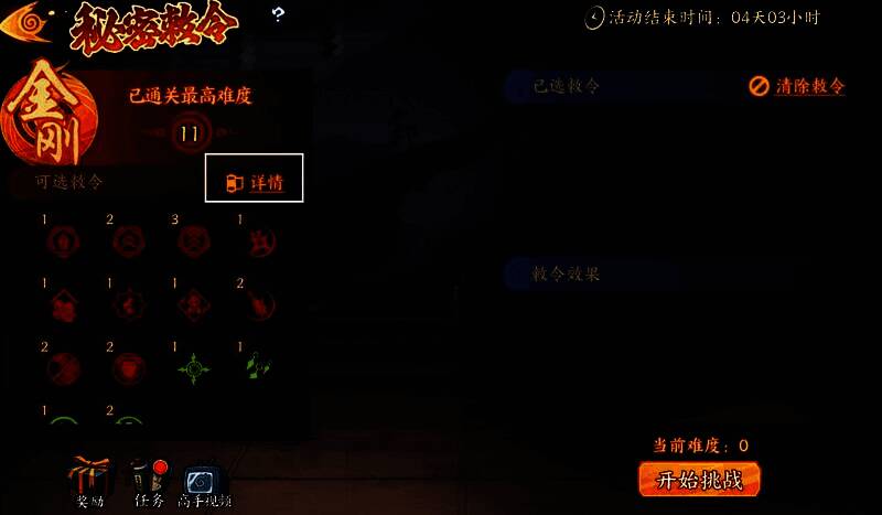 4、敕令有对应的难度等级,选择的敕令越多,总难度等级越高;