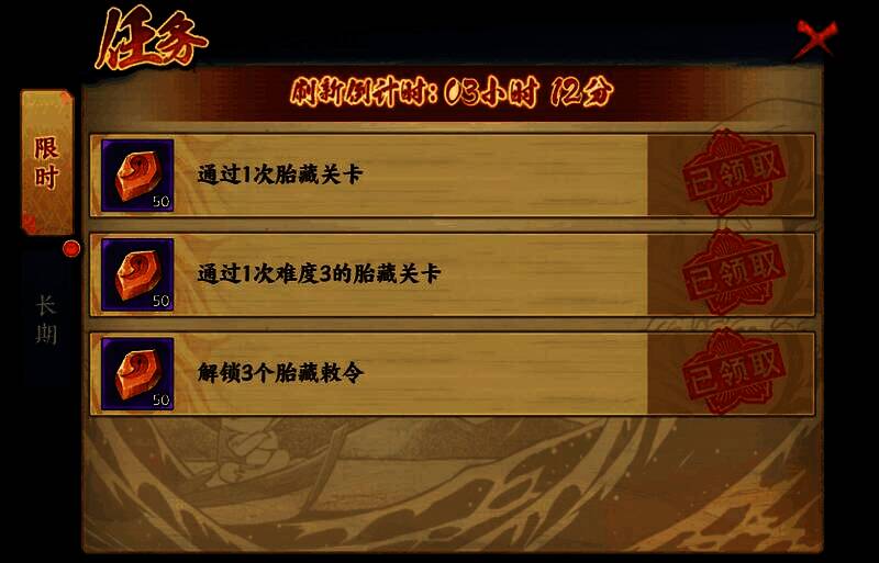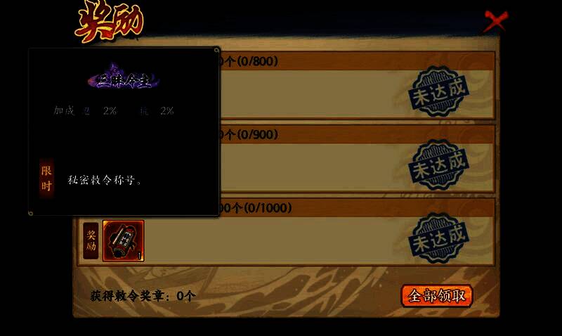 8、完成“长期任务”后,可获得敕令奖章,累计达到一定数量后,可获得大量勾玉晶石,以及称号“三昧令主”。