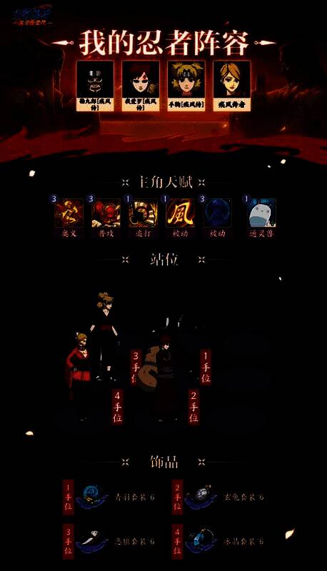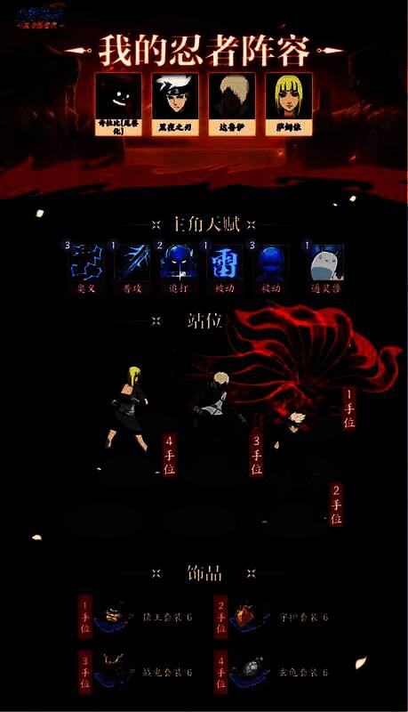 (2)手鞠[疾风传]造成暴击伤害时会附带目盲,反复刷脸触发暴击,目盲敌方无法免疫不良状态的输出忍者。