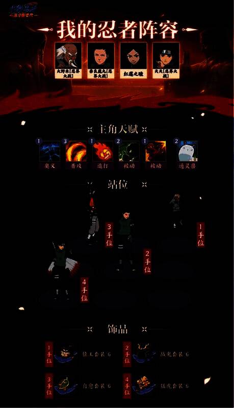 (3)可根据对方的站位调整黑夜之刃的位置,用于点杀对位的忍者;