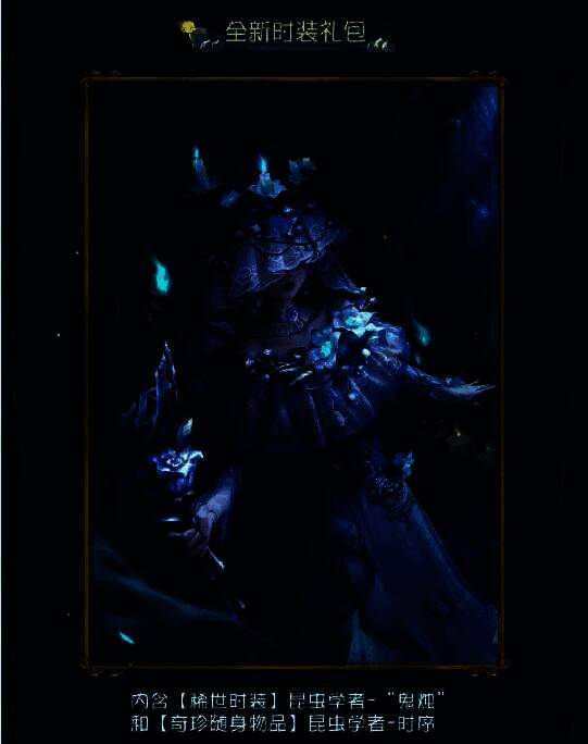 与本次主题活动同时上线的,还有昆虫学者限时稀世时装礼包,内含【稀世时装】昆虫学者-“鬼烛”和【奇珍随身物品】昆虫学者-时序。