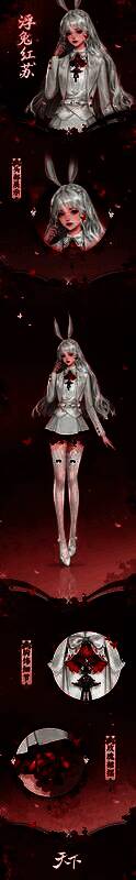 月映浮兔影,风摇红苏香。少女一头微卷银发自然散落,精心编织的小辫隐藏在发间,搭配萌趣兔耳更显活泼俏皮!白色西服的修身剪裁勾勒出了少女曼妙的身姿,纯白领结下衬赤红花簇装饰,搭配精致的金属蝴蝶吊坠将其衬得愈发娇俏动人!裙摆则采用分层设计,别具巧思。内层的玫瑰裙摆鲜红夺目,外罩一层简单的白色丝绸,蕾丝长袜上还有花草装饰装点,行走时仿佛游走于花丛之中~