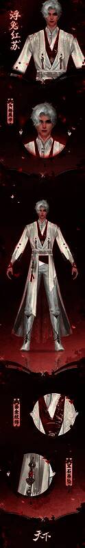 云隐浮兔雅韵长,风拂红苏帅气扬。少侠银发轻遮眉眼,带来了几分冷峻和凌厉。上衣的红白撞色搭配突显层次,内里的立领上衣以银线勾勒领口,红色中衣和银白外袍皆有暗纹描绘其上。其间的鎏金花草纹饰若隐若现,搭配外袍领口处的玫瑰金色流苏装饰,贵气之中又不失风雅~外袍被同色系皮带束起,利落飒爽,红宝石吊坠自腰间垂落,随着少侠的步伐轻晃。半透轻纱衣摆隐约可见珠光细闪,在日光的照射下熠熠生辉,吸引众人的目光!