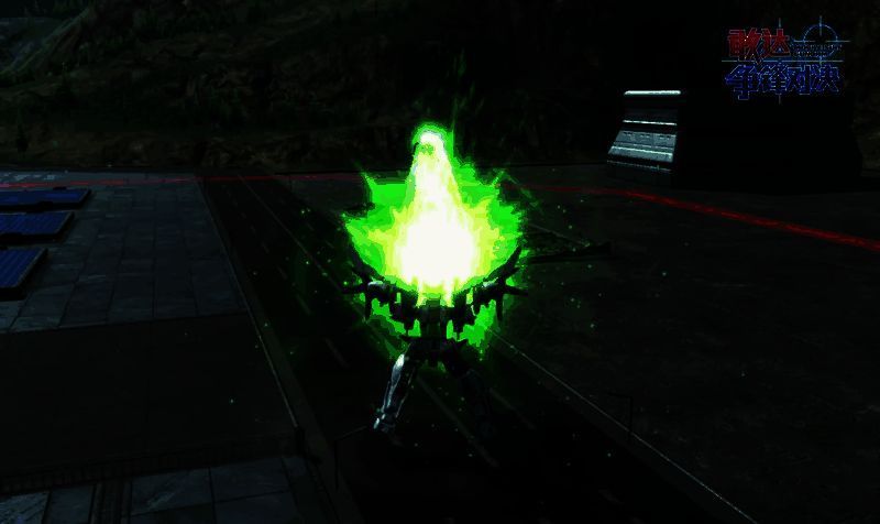 【照射攻击(后)】同时按下方向键后键和技能2键。使用莫比乌斯光束加农炮+光束步枪同时进行大照射攻击,命中地面或者障碍物产生暴风。