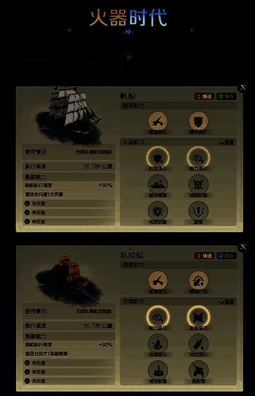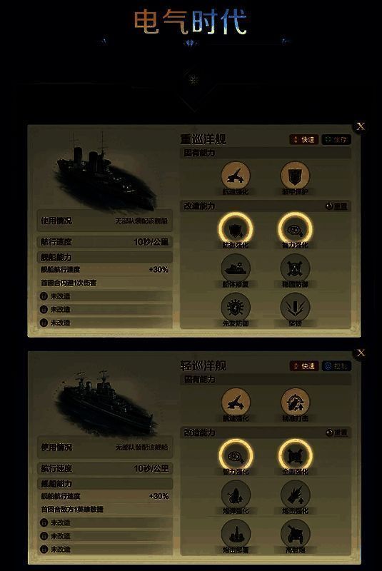 火器时代的各类帆船,拥有较快的航行速度,可以凭借机动性掩盖火力不足的劣势;工业时代的各类装甲船只,属性均衡,且配备对空打击能力,是玩家在海战中可以依赖的坚实伙伴;而在电气时代,各类巡洋舰以及驱逐舰的出现扩充了海战的规模,舰艇配备的尖端武器具备瞬间歼灭敌人的恐怖火力。