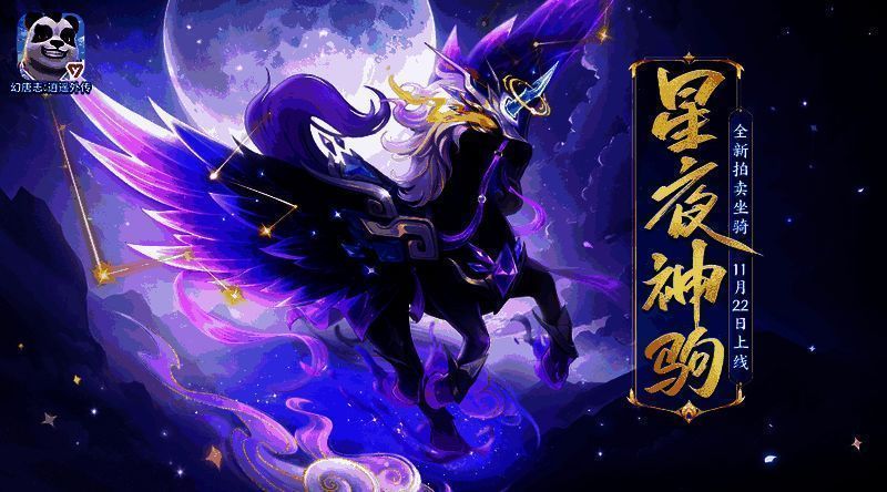 坐骑【坐骑·星夜神驹】将于每月1、2日20:00开启拍卖,全服每日拍卖1个;