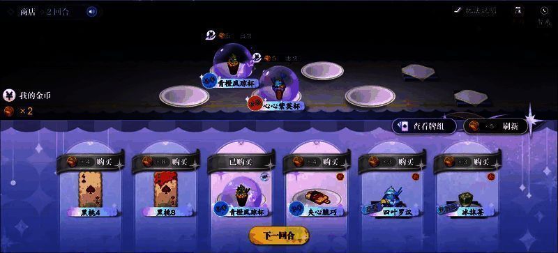 每回合通关后均会开启,开启后可消耗金币购买饼干牌、甜品、饮料,这三种道具各会刷新2个。也可消耗金币手动重新刷新全部商品,刷新消耗逐步增加,且每次开启商店均有刷新次数上限,下一次开启商店时将重置刷新消耗。