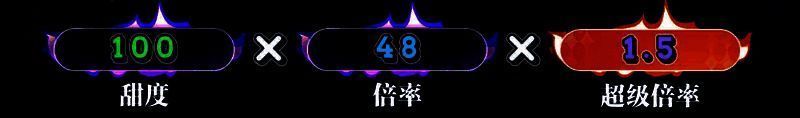仅可通过甜品、泡泡、果酱等效果获得,初始值固定为1,与甜度和倍率不同的是,每一条超级倍率加成之间,均为累乘计算,所以超级倍率加成之间不存在任何稀释。