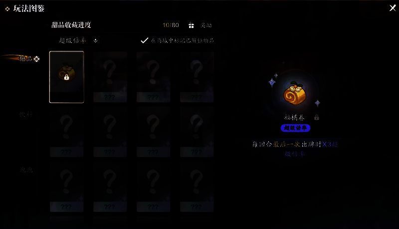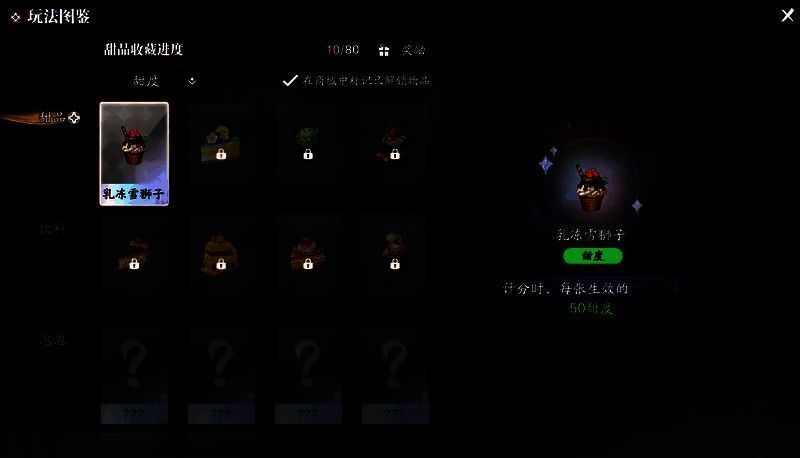 甜品种类繁多,是局内构筑的主要组成部分。甜品拥有后将持续生效,自毁或售出甜品后将失去对应甜品效果,最多可同时拥有5个甜品。