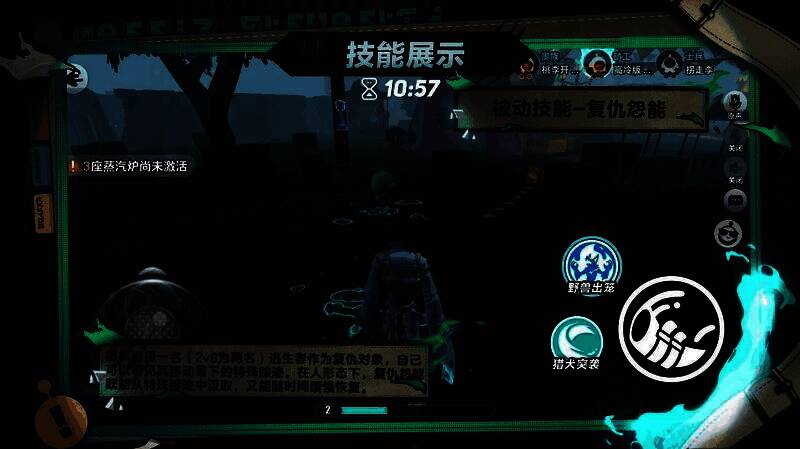 基于双形态玩法,雷蒙德拥有独特被动技能“复仇怨能”——随机选择一名(2v8为两名)逃生者作为复仇对象,自己可以看见其移动留下的特殊踪迹。在人形态下,复仇怨能既能从特殊踪迹中汲取,又能随时间缓慢恢复。