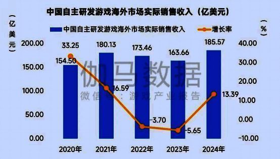 2024年中国自主研发游戏海外市场实际销售收入为185.57亿美元,同比增长13.39%。《黑神话:悟空》的海外发行、部分小程序游戏出海以及多个企业游戏全球化布局的拓展均是市场规模增长的重要因素。