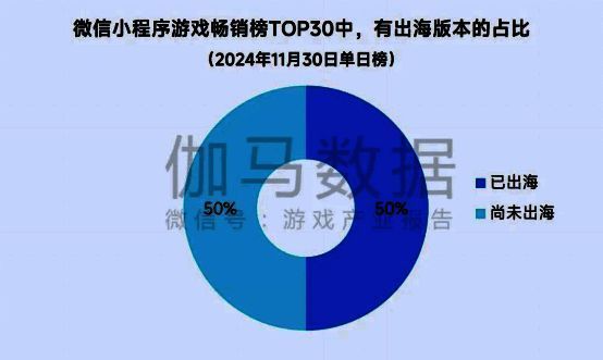 从当前成果来看,单日畅销榜单中TOP30微信小程序游戏中已有50%推出海外版本。