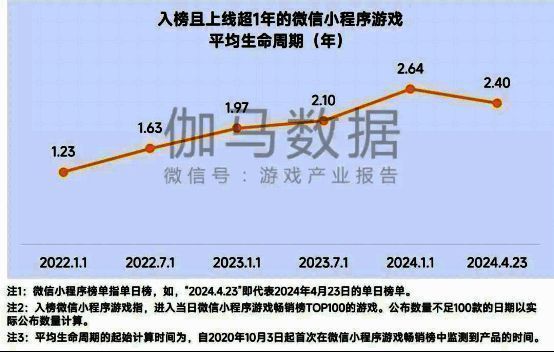 从头部榜单来看,虽然小程序游戏竞争日益激烈,使得上线不足6个月的产品入榜数量增加,但从已初步实现长线运营(运营时长超1年)的产品来看,其生命周期整体呈上升趋势,意味着头部游戏已先于整体注意到长线运营机遇。