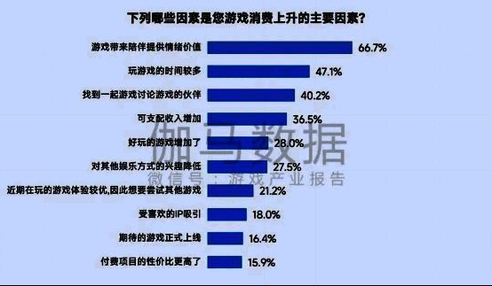 1)2024年,66.7%的受访用户表示陪伴与情绪价值是其游戏消费上升的主要原因。