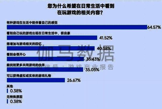 情绪价值是驱动用户付费、游玩女性向游戏的重要因素,43.12%用户比较希望在日常生活中看到在玩游戏的相关内容