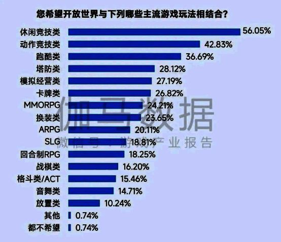 玩法布局空间上,较多用户期望开放世界与休闲竞技类、动作竞技类游戏结合。