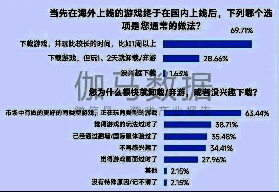 这是因为异步发行会削弱用户的游玩周期,约3成的用户表示当海外上线的游戏进入国内后,自己通常在1、2天后即卸载。而“弃游”的原因主要是市场中已有更好的同类产品,此外,还有已通过国际服等方式体验、觉得游戏玩法过时等原因,所以,在全球产品加速迭代的背景下,产品发行间隔越长,则越会承担竞品竞争的压力。全球同步发行能够有效缓解这一压力。