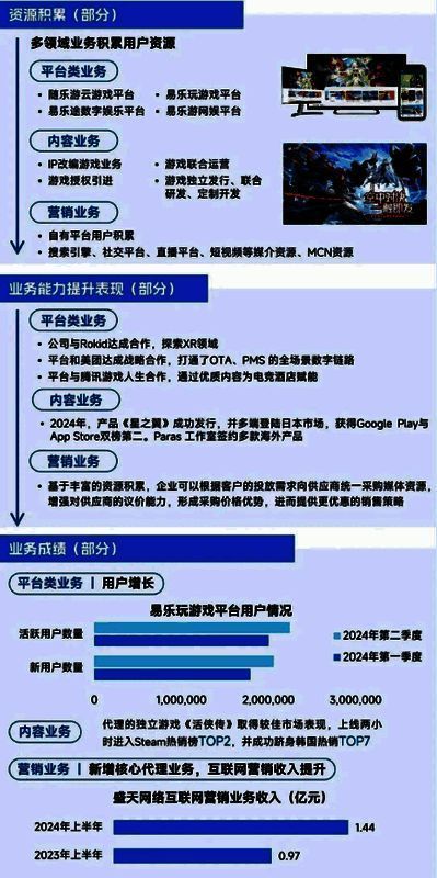 盛天网络的资源积累与合作能力同样值得重点关注。得益于业务的广泛涉猎,盛天网络在用户与企业层面均有丰富的资源积累,例如盛天网络旗下平台及内容业务聚集了大量娱乐场景用户,营销业务积累了较多媒介资源;继而在此基础上一方面可强化与相关领域企业的合作能力、拓展业务范围,另一方面在营销层面可增强对供应商的议价能力,从而优化销售策略吸引客户。最终形成“资源积累——业务能力提升——获取更多用户——资源积累”的正向循环。