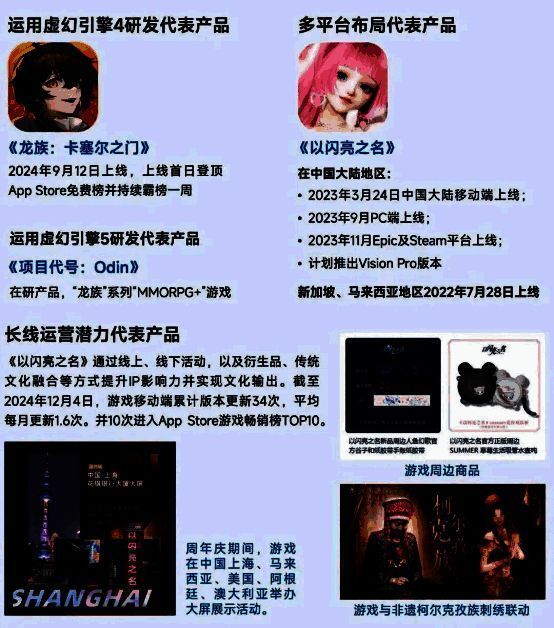 技术能力是祖龙娱乐的核心潜力,并为游戏精品化发展与长线运营提供有力保障。在技术层面,祖龙娱乐尤其在游戏引擎方面具有先发优势,旗下多款游戏产品采用虚幻引擎4研发,并且作为虚幻引擎5国内首批官方合作企业之一,企业已将虚幻引擎5投入至在研产品中,此外,企业还基于技术优势不断迭代游戏内容、布局多平台游戏等领域。在此基础上,结合前置的长线思路将助力祖龙娱乐旗下产品延长生命周期,其主要体现在两方面:首先,“前置”在于祖龙娱乐在产品研发阶段便贯彻精品化战略,在寻求技术突破的基础上通过多维考量整合资源以达到产出最优解;“长线思路”在于祖龙娱乐对于游戏IP运营的远景规划,例如在游戏上线初期即制定3~5年的运营规划,这将有效推进IP品牌与企业品牌建设,并提前规避消耗品牌的事件风险,从而延长产品及IP的生命周期。
