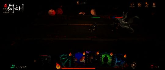 在战斗设计上,《对决!剑之川》独具匠心,每场战斗设定为3分钟一局,引入了武侠游戏中罕见的即时策略卡牌机制。与传统武侠游戏不同,在《对决!剑之川》中,玩家可以安排5名角色上阵(4名首发,1名替补),搭配4张策略卡和1个身法技能,这种多维灵活的组合方式,极大地提升了游戏的新鲜感。