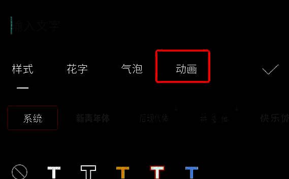 输入字幕文字,然后点击文字界面的动画