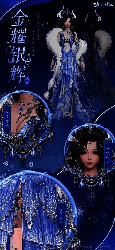 匠心独运,剪裁出彩!轻盈羽毛与冰雪配色相得益彰,每一寸都彰显着女性的轻盈娇柔;玄甲的冷硬遇上金属的华彩,每一处均蕴藏了男性的力量之美!穿上全新时装·金耀银辉,仿佛置身于奇幻的世界里,每一寸布料、每一颗珠宝都闪耀着别致的光芒。