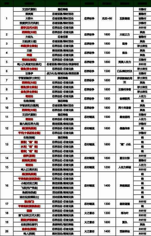 以下图表展示的是往期远征忍者所属的图鉴和绘卷,以供各位忍者学员更明确的进行收集;