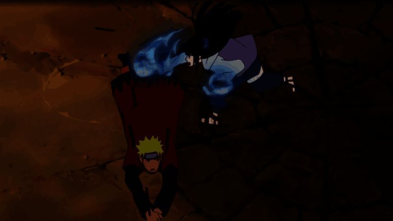 之后晓组织佩恩入侵木叶,以强大的实力将木叶夷为平地,鸣人从妙木山修炼回归,与佩恩决战,但双拳难敌四手,鸣人被佩恩的黑棒插在地上。
