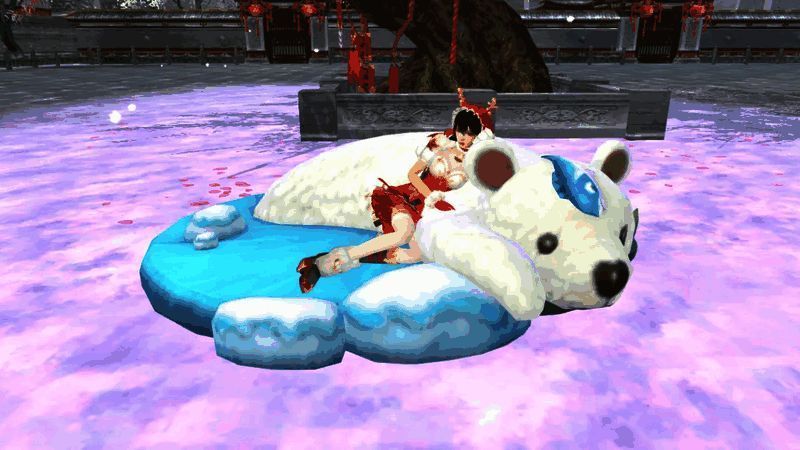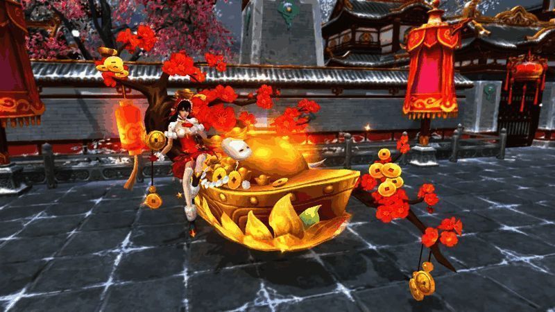 这次的新坐骑也是新年元素拉满,底座巧妙地采用了巨大的金元宝造型,金光闪闪。朵朵盛开的梅花点缀其间,更显清雅,为这豪华坐骑平添了几分高雅与韵味。