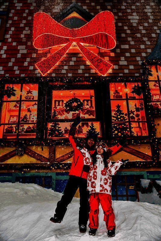 双旦期间,步入广州热雪奇迹,高大圣诞树挺立,装饰璀璨夺目,形态多样的雪人分布各处,更有冬日全天候浪漫飘雪,让人仿若置身梦幻北欧童话之境。