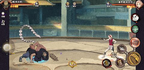 长按一技能则5枚苦无缓慢发射。期间蝎的本体可自由移动,拉近和敌人的距离,提高苦无的命中率。也可普攻操纵三代目风影傀儡向前攻击,远距离作战。