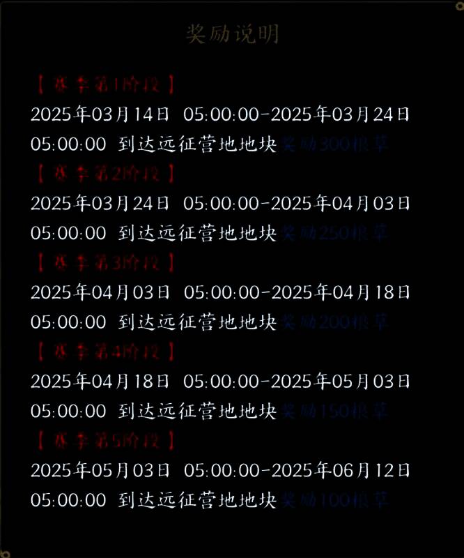 1、远征营地可获得的粮草,与赛季开启的时间阶段挂钩;