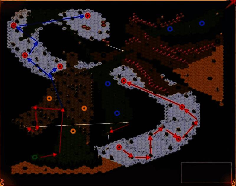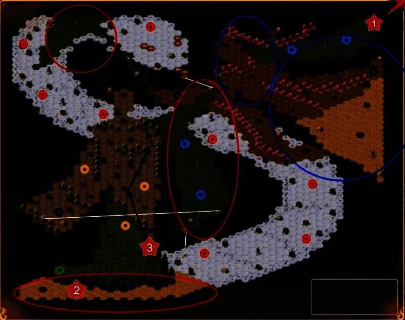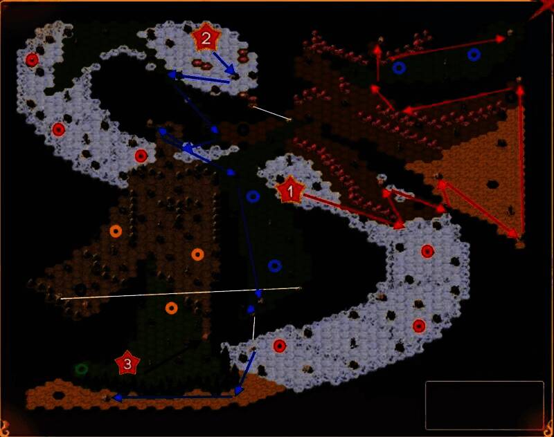 (3)依靠2队按照蓝色路线的方向占领远征营地;