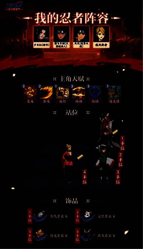 Tip:上图中尝试阵容推荐里标红的为携带对应新饰品的忍者,仅供参考。