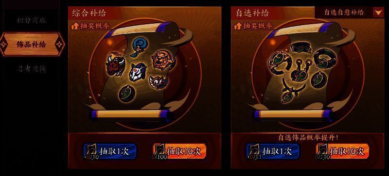 Tip:若对提升战力需求不大的忍者学员,为了节省“饰品补给券”的消耗,可一直抽“综合补给”,将大部分饰品升阶为蓝色后,再考虑抽“自选补给”。