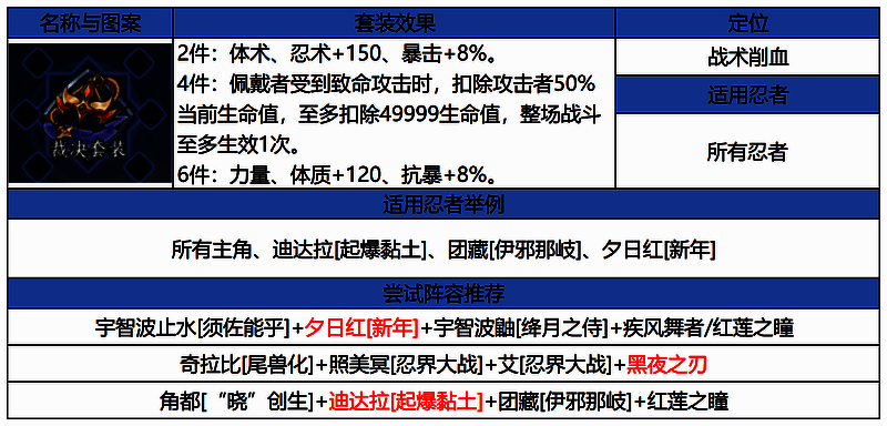 (3)适用场景举例:忍界对战、竞技场、斗祭战场、忍界远征、五忍试炼。