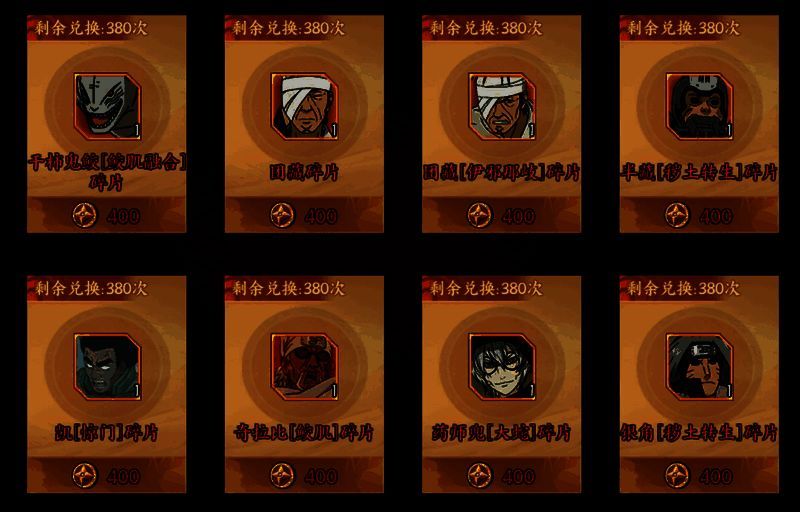d、远征忍者图鉴收集图中,标红的忍者可通过忍界远征里的忍者兑换获得;