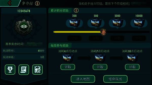 ※ 战斗阶段开始后,玩家可以通过进攻/侦察各据点内防守队伍配置来获得积分;※ 若地图上据点均已被破坏,则可以通过巡逻快速获得积分。