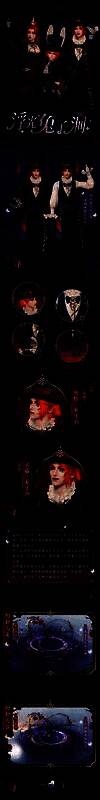 成女为暗黑哥特风,蕾丝、珠绣、金属多层材质还原中世纪重工工艺,在暗夜基调中透露着华贵的神秘感。暗红色拖尾裙摆搭配亮片效果,行走间如同在地面拖曳出血色星河。