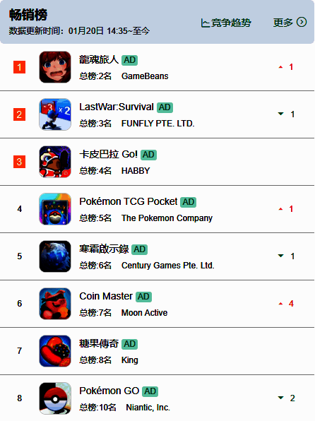 自 1月 9 日提前上线港澳台地区后,迅速登顶港澳台下载榜,并拿下中国香港畅销榜冠军,成为开年爆款。这款标榜为“喜剧后宫番”的放置手游,竟然把“躺平哲学”和“恋爱喜剧”缝出了新高度!3分钟推完一章剧情,10分钟收完离线奖励,抽空还能和美少女约个会。难怪港澳台玩家称它为“电子布洛芬”,专治周一综合症。
