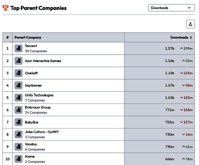 成立于 2020 年的 Supersonic 依托其专业发行能力和创新技术,助力全球开发者打造了不少爆款游戏。Appsflyer 数据显示,Supersonic 旗下游戏的全球累计下载量已突破 62 亿次,平均月活跃用户在 2024 年 1 月至 10 月期间达 1.9 亿,推动 Unity 成为 2024 年仅次于腾讯、Azur、Onesoft 和 SayGames 的全球第 5 大移动游戏发行商。