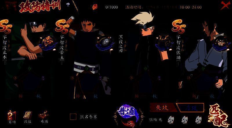 3、选择后攻阵营时,可选择2个能保证小队忍者生存的忍者,搭配2个输出能力较强的忍者;